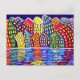 Färgt Cityscape Roligt Folk Art-postkort Vykort