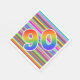 Den här pappra napkin-konstruktionen för öga-fångst, vibrerande och roligt har en färgstark rand mönster, tillsammans med siffran "90" med en flerfärgad regnbåge som övertoning mönster. Pappra napor som dessa kan vara roligt till använda vid ett firande som hålls för att hedra någons nittioårsdag, eller kanske ett pars nittionde bröllop-årsdag, eller någon annan 90:e händelse. [~Z0000352]
