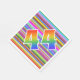 Den här roligten, spännande och öga-fånga pappra napkin-konstruktionen har en färgstark rand mönster, tillsammans med siffran "44" som har en flerfärgad regnbåge som övertoningen mönster. Pappra servetter som dessa kan vara roligt till använda vid ett party som hålls för att hedra någons fyrtiofjärde födelsedag, eller kanske ett pars fyrtiofjärde bröllop årsdag, eller något annat fyrtiofjärde evenemang. [~Z0000352]