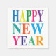 Lägg till färg och en unik beröring till ditt nya års party med dessa party-servar och fira med din familj och dina vänner. Den här designen innehåller en stor text som säger "gott nytt år" med brev i blått, orange, grönt, gult, fuchsia, aqua och lila färg. Koordinerar objekt som finns i min butik.