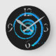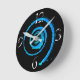 Väggklocka med bild en abstrakt med en ljusblå vrift på svart, ansikte på klockan. Anpassade.
