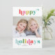Ett modernt typografiskt fotokort med helgdag med vit brev med flera färger för en roligt, lätt livlig vib. Koordinerar baksidan med ytterligare fotoöppning och meddelandeområde.