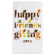 Färgfull typografi och höst löv vänner som ger höstpresentsäck. Texten "Friendsgiving" i färglös typografi och höst löv i brun, orange, oliv grönt och gult tillsammans med anpassadets datum adderade denna unika Thanksgiving-påse.