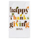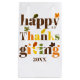 Färgfull typografi och höstpresentväska i höst löv Thanksgiving. Texten "Thanksgiving" i färglös typografi och höst löv i brun, orange, oliv grönt och gult tillsammans med anpassadets datum adderar denna unika Thanksgiving-presentsäck.