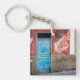 Färgvägg med blå dörr