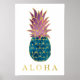 Färgvattenfärgad ananas och Guld Aloha Poster