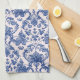 Den här handduken har ett årtusendesformat som har ett marinblått dammmönster på rosa.