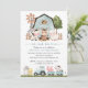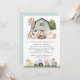 Invite friends and family in style and set the tone for your special day with this charming birthday invitation. Design features farm animals (cow, horse, sheep, pig, rooster, chicken), blue barn and blue tractor on white background.