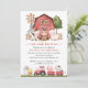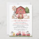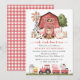 Invite friends and family in style and set the tone for your special day with this charming birthday invitation. Design features farm animals (cow, horse, sheep, pig, rooster, chicken), red barn and red tractor on white background.