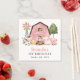 Add a personal touch to your birthday celebration with these stylish and memorable party items! Design features farm animals (cow, horse, sheep, pig, rooster, chicken) and pink barn on white background.