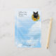 Affärsbrev pappert under temat "Affärsområde". Mindre 8 x 5 tum papper med blå himmel-bakgrund, svart katt- och solblommor. Anpassa texten längst upp och grund i varje lakan i svart, högt, utskrivet teckensnitt.