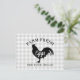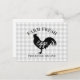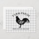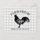 Kycklingsilhuett i mitten med "ägg"-text som täcker över grått och vit gingham plaid-bakgrund. Ytterligare text: "Jordbruk färsk, frigående, ekologisk". Underbar hemdekanter biet för jordbrukshus, land och rustika teman.