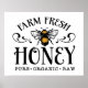 Den här poster innehåller ord "Farm Fresh Honung" och "Pure * Organic * Raw" samt ett stort svart honungsbin och honungsbin från guld.