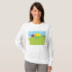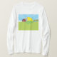 Stay comfortable and stylish during cooler days with this charming farm landscape womens long sleeve t-shirt. The design features a cheerful red barn and apple orchard under a bright sunny sky, rendered in a clean cartoon style. This soft top is perfect for layering during autumn outings, gardening, or casual weekend walks. Its vibrant primary colors and peaceful rural theme make it a lovely choice for those who appreciate a classic farmhouse aesthetic and want to bring a bit of the countryside to their everyday wardrobe.