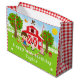 Den här söta och roligt presentpåsen kan vara personlig med namn eller en titel som son, barnson, brorson, vän osv. Den har en brun hårpojke med rättvis hud bredvid en röd lada med en tupp vind-fläkt. Det finns ett förtjusande boskap som en ko, gris och höna. I bakgrunden är blå himmel, äppeläpple träd, solsken, fjärilar och daisy ljusa.