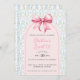Den vackra 16-åriga inbjudan till sötsaker har en rosa båge. Omkring kant är ett rosa och ett gräns under det blå årtusendet. Du kan anpassa dig med all information för din speciella händelse. Baksidan har en samordnande mönster.