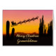 Ett julkort för dina barnbarn som visar jultomten som flyger över öknen. Många kaktus ses i silhuette. Önska en god jul från öknen med ett vackert färgad.
