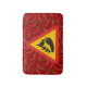 Varningsskylt för triangel med peppar och flamsilhuett.