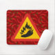 Varningsskylt för triangel med peppar och flamsilhuett.