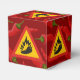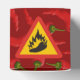 Varningsskylt för triangel med peppar och flamsilhuett.