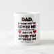 "Pappa, jag vet att du har älskat mig så länge jag har levt.. men jag har älskat dig hela livet" kaffe mugg. Har en modern, manlig typografi med två röda hjärtan och personlig med ditt namn.
