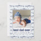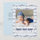 Fars dag gratulationskort med fiskmönster, ditt favoritfoto och "bästa pappa någonsin" i modern typografi i blått. På baksidan av kortet kan du anpassa meddelandet eller ta bort texten för ett handskrivet meddelande.