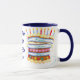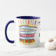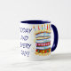 En vit ringsignal mugg av bra med mörk blått fälg och handtag. Den handmålade utformningen är en Fars dag-kummel och en påminnelse om att varje dag är "Fars dag". Se även matchande hälsningskort och kläder. Dishwasher och mikrovågsugn-säker.