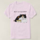 En kalicokatt sitta bredvid matskålen som låter alla veta att de har den bästa Cat Pappa EVER!!