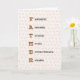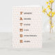 Ett speciellt kort för far, med FAR i brev brukade belysa ord som kommer att tala om för honom hur underbar han är. Fantastisk, adjektiv, Terrific, Heroic, Extraordinär, tillförlitlig. Bakgrunden är utspridd ek löv, för att symbolisera den styrka som ett far ger sin familj. Insidan är dekorerad med mer ek löv, och det finns ett anpassade hälsning: "Grattis på födelsedagen till ett underbart pappa". Skriv in rutan om du till exempel vill ändra den till "Lycklig Fars dag".