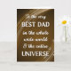 pappert hälsningskort i fars dag för ett speciellt Pappa, Far. Den kelestiala temat hälsning med stjärnor och snurrar. Masculine Earth tonade färg med universum Tema. Art, bild och versell copyright © Shoaff Ballanger Studios, 2023.