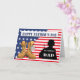 Här är ett färgrikt fars dagkort för din militära pappa. Det presenterar en amerikanska flagganbakgrund, militär startar, hundbrickor och en soldatsilhouette. Hundbrickor ©2015 och kort för stridkängor (DTCB) vid sherry Harris