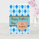 Lycklig Fars dag för #1 Pappa, pappert hälsningskort. Argyledesign i diamant mönster i blå och vita nyanser. Ett faux-trähjärta med text lägger till ett maskulin inslag i kortet. Modern utformning och utformning av contemporaryn med fet maskulin linjer och färg. Fars dag-kort för morfar/morfar/Opa. Mönster, artighetsfröjd över karnold/publicdomainfoton. Bild och versell copyright © Shoaff Ballanger Studios.