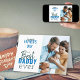 Personlig Fars dag-fotokort. Utformningen av den akuta typografin med handskrivna avslappnader och en modern blå och mörk grönt palett i färg. Fotomallen är ett redo för dig att lägga till ditt favoritfoto och du kan även inkludera ett personlig-meddelande i. DADDY kan vid behov redigeras till PAPPA eller PAPPA.