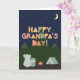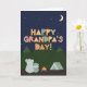 Fars dag Day Card för morfar. Det här söta, utomordentliga Fars dag-kortet är perfekt för alla farfar som kärlek campar, naturen, utomhusen och tittar upp vid stjärnorna på natten himlar med barnbarn. Fars dag-kortet har en farfarfarsbjörn och en barnbarnbjörn sitta utomhus av en campfire och tält i vildmarken som tittar upp vid stjärnorna i himlar och bergen. Den söta skandinaviska-stil-texten lyder: Lycklig Grandfather's Day, Grandpa! Gör det här anpassadet! Klicka på "Redigera design", "Inside Grund/Höger: Text & Bilder", "Text" och "Lägg till text" för att skriva din egen anpassningsbar, personlig meddelande till Grandpa inuti!