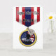 Ge detta militära Hero Medal-kort till ditt amerikanska militära Pappa i Fars dag och berätta hur stolt du är och hur mycket du kärlek honom. Kortet har en guld-medalj med en amerikansk Flagga, soldat silhouette med ord "Hero" över den. Hundbrickor som är präglade av "I Kärlek U". Medaljen hänger från ett rött, vitt och blått band med ord, "Lycklig Fars dag Pappa." ©2015 Hundbrickors & Combat Boots militära kort av Sherry Harris