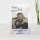 Ett hälsningskort för foto i fars dag visar en modern abstrakt blå och beige bakgrund med en enkel blommigt. Det innehåller ditt foto och Bible Verse Philippians 4:4, "Rejoice in the Lord alltid". Den inre välsignelsen för Pappa kommer från Bible Verse Numbers 6:24-26: "Herren välsignar dig och behållan dig. Herren får ansikte att skina på dig och vara vänlig mot dig. Herren vänder sitt ansikte mot dig och ge dig fred." Hälsning kan anpassas eller tas bort för ett handskrivet meddelande.