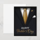 Detta fars dag-kort utstrålar sofistikation och uppskattning för den märkliga mannen i ditt liv. Kortet har en skarp bild av en väl tillskuren svart kostym, komplett med en lyxig gyllene slips. Mittenstycket är ett hjärtligt meddelande i glänsande guldbokstäver som lyder "Glad fars dag."