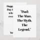 ”Pappa: Mannen. Myten. Legenden.” är den perfekta gåvan till fars dag, födelsedagar eller vilken dag som helst du vill hedra en fantastisk pappa. Perfekt för t-shirts, muggar och gratulationskort