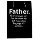 Fars dag-citattypografi Lycklig-Fars dag Medium Gift Bag designad av Nisha Prabhu. Fira Pappa i stil med detta trendig och tankfull presentväska från Fars dag med en modern typografi och ett hjärtligt budskap. Denna medelstora presentsäck är perfekt för att han presenterade sin speciella present till Pappa på sin stora dag. Gör Fars dag extra speciell med den här öga-fångstpåsen och den anpassade presentpåsen från Cutehomegifts Zazzle.
