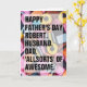 Ett sött kort för pappa (eller morad eller annan manlig släkting) för Fars dag! Färgrika lakoriesallsorksaker är bakgrunden till denna redigerbara design. Hela texten kan ändras och lyda " Lycklig Fars dag [Pappa Namn]. Make. Pappa. "Allsorter" av Fantastisk". Anpassa den med ett namn och er egen text. Inuti texten står: "Sweetest önskemål to the Best Pappa någonsin", Fars dag i Lycklig. Kärlek från [Namn} xxx".