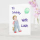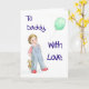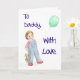 Ett fars dagkort med en målning av en liten flicka i grov bomullstwill, innehav henne nalle och en ballong. Hälsningen på bekläda är "till pappan, med kärlek", och den inre hälsningen äger rum, "på fars dag".