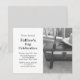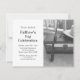 En inbjudan med foto av fiskeutrustning för att planera den perfekta farsdagsfirandet, fylld med en djärv grå bokstavsstil bara för pappa. Du kan anpassa denna inbjudan med din information och ersätta fotot med ditt eget. Baksidan av kortet har en subtil grå färg för att komplettera den rustika, utomhusinspirerade temat.