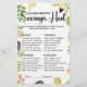 Färsk av Bachelorette Scavenger Hunt Game | Roligt Möhippa & Hen Party Activity Get redo för ett äventyr och mycket skratt med vårt "Fresh off the Market" Bachelorette Scavenger Hunt Game! Den här spännande aktiviteten är perfekten för att tillföra energi och interaktion till din möhippa, bachelorette-fest, eller när du gör det. Med våra charmerande, handdragna produkter och beundransvärda blommigtar med vattenfärg kompletterar det på ett vackert sätt ert färska, naturliga, jordbruks- och jordnära tema. Så här spelar du upp: Gäster får en lista över objekt som ska hittas, foton som ska tas eller uppgifter som ska slutföras relaterade till bruden, händelsen eller platsen. Den första person eller det första team som ska fylla i listan (eller de flesta punkterna inom en tidsgräns) vinner! Det är ett fantastiskt sätt att få gäster att utforska, interagera och skapa superskojets minnen tillsammans. Kortet "Fresh off the Market" Scavenger Hunt ger en lista över utmaningar i en engagerande, tematisk design. Det är ett mångsidigt spel som fungerar bra oavsett om du är hemma, ute i stan eller njuter av en utomhusplats. Samordna detta livliga spel sömlöst med andra artiklar från vår "Fresh Off the Market"-samling, som inbjudningar, andra spelkort och skyltar, för ett vackert sammanhållet och underhållande evenemangstema. Anpassa enkelt jokertecknet genom att lägga till bridens namn, händelsemedatum eller eventuellt anpassa några av jaktmeddelandena för att passa din specifika plats eller grupp (beroende på Zazzles mallfunktioner). Tillgänglig tryckt på förstklassig kartong eller som en praktisk digital nedladdning i hemmet. Klicka på "Anpassa nu" för att anpassa din Fresh off the Market Scavenger Hunt Game-kort och se till att du får ett äventyrligt och minnesvärt firande! Skräjjakt på bachelorette, jakt på möhippa, hen-party-spel, friskt marknadsspel, party-aktivitet för jordbrukare, rustic bröllop-vilt, trädgårdtemvilt, utskrivbar scavenger-jakt, interaktivt party-spel, blommigt, duschatt,