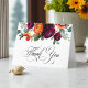 Fånga blommigtar i burgundröda nyanser, rosa, rostfri orange och eucalyptus i grönten accentuerar detta bröllop Tackkort-kort. Kortet lämnas avsiktligt tomt på insidan för att du ska kunna antingen skriva dina anteckningar individuellt eller lägga till din egen text i en anteckning för att ha tryckt på hela tackkortet.