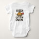 Varm, mysigt och fullt av charm, "Fresh Out of the Oven" ger en fin illustration av en gyllene bun som vilar i en bakplatta. Perfekt för livsmedel, bagare och alla som kärlek har en frisk pun. Den här utformningen firar glädjen att baka (och kanske till och med nyfödda humor).