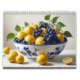 Färsk frukt, sortering, hälsosam färgad mat kalender