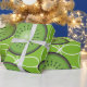 Lägg dina presenter i en spiral av levande grönt med denna snygga papper med en skarp mönster av färska, saftiga kiwi-skivor. Den ljusa bakgrunden till grönten och det skarpa, vita, runda mönster skapar en lekfull utformning av eleganten, perfekt för att tillföra en aning tropisk färskhet till alla förekomster.
