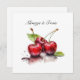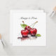 Skicka ett sött, levande meddelande med den här färska körsbärstrion i vykort för vattenfärg. Kortet har en fantastisk illustration av tre blötter, vattenfärgskörsbär, vilket ger din korrespondens en frisk, naturlig konst. Anpassa den med din egen text så att den blir unik. Anpassa det med att tänka på dig, Est. 20XX, eller vårt sötkö.