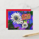 Upbeat, rolig blomma attraktion. Ur lila regn stiger prästkragar.