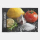 Färska grönsaker och örter som citron, citronsegment, vitlöksduva, råsalt, tomat och timjan gren på en svart vintage bord, perfekt för matlagning av älskare och hemmade matlagningsföretag eller till och med en fin skräddarsydd gåva till en ny brud eller till din make/maka.